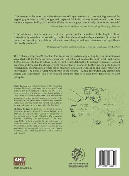 This volume comprises 23 chapters that focus on the archaeology of Lapita, a cultural horizon associated with the founding populations who first colonised much of the south west Pacific some 3000 years ago.