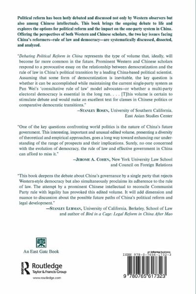 The growing disconnect between China's market-oriented economy with its emerging civil society, and the brittle, anacronistic, and authoritarian state has given rise to intense discussion and debate about political reform, not only by Western observers, but also among Chinese intellectuals. While some expect China's political reform to lead to democratization, others have proposed to strengthen the institution of single-party rule and provide it with a solid legal base. This book brings the ongoing debate to life and explores the options for political reform. Offering the perspectives of both Western and Chinese scholars, it presents the controversial argument for building a consultive rule of law regime as an alternative to liberal democracy. It provides several critiques of this thesis, and then tests the thesis through empirical studies on the development of the rule of law in China.