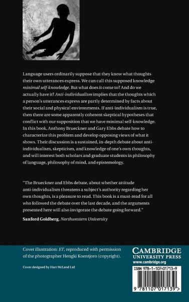 Language users ordinarily suppose that they know what thoughts their own utterances express. We can call this supposed knowledge minimal self-knowledge. But what does it come to? And do we actually have it? Anti-individualism implies that the thoughts which a person's utterances express are partly determined by facts about their social and physical environments. If anti-individualism is true, then there are some apparently coherent sceptical hypotheses that conflict with our supposition that we have minimal self-knowledge. In this book, Anthony Brueckner and Gary Ebbs debate how to characterize this problem and develop opposing views of what it shows. Their discussion is the only sustained, in-depth debate about anti-individualism, scepticism and knowledge of one's own thoughts, and will interest both scholars and graduate students in philosophy of language, philosophy of mind and epistemology.
