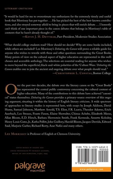 "It would be hard for me to overestimate my enthusiasm for the extremely timely and useful book that Morrissey has put together...He has picked the best of the best-known contributions, and also strayed someway afield to bring in pieces that will enrich debate...I honestly can't think of one important piece in the canon debates that belongs in Morrissey's table of contents that he hasn't already though of." - Kevin J. H. Dettmar, Past-President, Modernist Studies Association