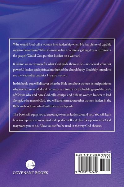 Why would God call a woman into leadership when He has plenty of capable men to choose from? What if a woman has a continual galling dream to minister the gospel? Would God put that burden on a woman? It is time we see women for what God made them to be--not sexual icons but powerful leaders and spiritual mothers of the church body. God fully intends to use the leadership qualities He gave women. In this book, you will discover what the Bible says about women in lead positions; why women are needed and necessary in ministry for the building up of the body of Christ; and why and how God calls, equips, and ordains women leaders to lead alongside the men of God. This book will equip you to encourage women leaders around you. You will learn how to empower women into God's perfect will and plan. Be open to what God may want you to do. Allow yourself to be used in the way God chooses.