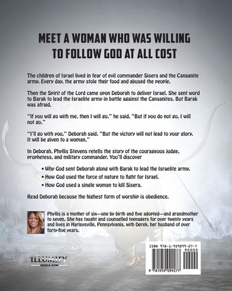 The children of Israel lived in fear of evil commander Sisera and the Canaanite army. Every day, the army stole their food and abused the people. Then the Spirit of the Lord came upon Deborah to deliver Israel. She sent word to Barak to lead the Israelite army in battle against the Canaanites. But Barak was afraid. "If you will go with me, then I will go," he said. "But if you do not go, I will not go." "I'll go with you," Deborah said. "But the victory will not lead to your glory. It will be given to a woman." In Deborah, Phyllis Stevens retells the story of the courageous judge, prophetess, and military commander. You'll discover ¿ Why God sent Deborah along with Barak to lead the Israelite army. ¿ How God used the force of nature to fight for Israel. ¿ How God used a single woman to kill Sisera. Read Deborah because the highest form of worship is obedience.