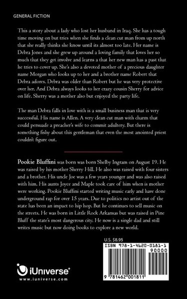 This a story about a lady who lost her husband in Iraq. She has a tough time moving on but tries when she finds a clean cut man from up north that she really thinks she know until its almost too late. Her name is Debra Jones and she grew up around a loving family that loves her so much that they get involve and learns a that her new man has a past that he tries to cover up. She's also a devoted mother of a precious daughter name Morgan who looks up to her and a brother name Robert that Debra adores. Debra was older than Robert but he was very protective over her. And Debra always looks to her crazy cousin Sherry for advice on life. Sherry was a mother also but enjoyed the party life. The man Debra falls in love with is a small business man that is very successful. His name is Allen. A very clean cut man with charm that could persuade a preacher's wife to commit adultery. But there is something fishy about this gentleman that even the most anointed priest couldn't figure out.
