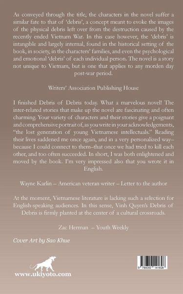 As conveyed through the title, the characters in the novel suffer a similar fate to that of 'debris', a concept meant to evoke the images of the physical debris left over from the destruction caused by the recently ended Vietnam War. In this case however, the 'debris' is intangible and largely internal, found in the historical setting of the book, in society, in the characters' families, and even the psychological and emotional 'debris' of each individual person. The novel is a story not unique to Vietnam, but is one that applies to any morden day post-war period. Writers' Association Publishing House I finished Debris of Debris today. What a marvelous novel! The inter-related stories that make up the novel are fascinating and often charming. Your variety of characters and their stories give a poignant and comprehensive portrait of, as you write in your acknowledgements, "the lost generation of young Vietnamese intellectuals." Reading their lives saddened me once again, and in a very personalized way-because I could connect to them-that once we had tried to kill each other, and too often succeeded. In short, I was both enlightened and moved by the book. I'm very impressed also that you wrote it in English. Wayne Karlin - American veteran writer - Letter to the author At the moment, Vietnamese literature is lacking such a selection for English-speaking audiences. In this sense, Vinh Quyen's Debris of Debris is firmly planted at the center of a cultural crossroads. Zac Herman - Youth Weekly
