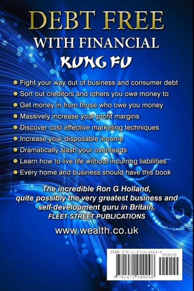 Are you worried about your debts? Many people have told me they think every home in the world and every government official should have a copy of this book because of the street wise information and practical wisdom it contains. Who am I to argue? Over the years the book has been tweaked and edited only marginally, all the time taking care to keep the original writing style the same as when young Ron wrote it. Interestingly enough this book, over thirty years on, under its new title, Debt Free With Financial Kung Fu it is still as relevant today as it was thirty years ago, perhaps even more so, despite the advent of the Internet, Facebook, Google and other technologies.It has been endorsed as the most definitive book about getting out of debt that has ever been written (Midas Report) and many claim it to be the 'business bible' showing not just every aspect about getting out of debt but how to make every business extremely profitable and easy to manage.