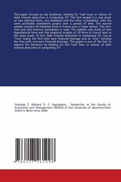 This paper focuses on tax incidence, looking for "real" loser or winner of debt interest deduction in computing CIT. The first sample is a case study of two identical firms, one indebted and the other unindebted, with the same profitable investment project over a period of time. The second sample contains 20 indebted firms in France over a 5-year period. The non-free cost and revenue assumption is used. The stylized case study of two hypothetical firms and the empirical analysis of 20 firms in France lead to the same result. In fact, Debt interest deduction in computing CIT, has as "true" losing the firm with zero financial leverage and as "true" winning the firm with non-zero financial leverage. This paper is one of the first to expand the literature by looking for the "real" loser or winner of debt interest deduction in computing CIT.
