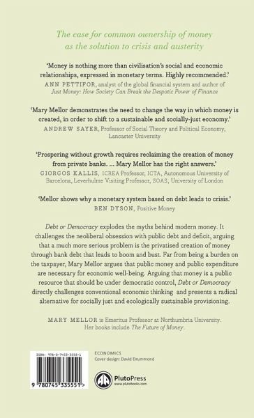 This is a challenge to conventional thinking around money and the 'debt crisis'. By re-evaluating the source of money, Mary Mellor presents a radical alternative to austerity and privatisation: public wealth, or, money used for sustainability, sufficiency and social justice. Debt or Democracy debunks the received lessons of the financial crisis of 2007. Political elites shout about a house whose finances are in disarray; a 'yawning deficit' created by reckless spending in a bloated public sector. The answer to this 'debt crisis' has been harsh austerity measures - but this is a dangerously deceptive discourse.Turning against the prevalent narrative, with its language of 'debt' and 'deficit', Mellor takes on the familiar question - 'where does money come from?'. The real solution is a return to the notion of public wealth and the public economy; of a monetary system owned by, and operated in the interests of, the majority.