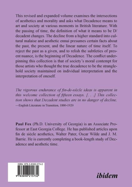 This collection seeks to examine the intersections of aesthetics and morality, of what Decadence means to art and society at various moments in British literature. Both artistic and social values are inflected by their histories, and, as time passes, so the definition of what it means to be D/decadent alters. The very ideas of the decline from a higher standard, of social malaise, of aesthetic ennui, all presume certain facts about the past, the present, and the linear nature of time itself. To reject the past as a given, and to relish the subtleties of present nuance, is the beginning of Decadence. Purportedly decadent artists focused upon the fleeting present, ascribed value to experiencing the aesthetic moment in its purest form, and it was precisely due to this focus upon living in, and for, the moment that society often responded by expressing moral contempt for the perceived hedonism of art. The aesthetic rejection of contemporary value added to the conflict between the literary and social inflections of Decadent interpretation. The truly decadent was condemned by artists as the stranglehold society maintained on individual interpretation and the interpretation of oneself. This conflict underlies the range of essays in the collection.