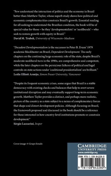 This book describes the institutional context that has thwarted the emergence of either a capable developmental or a neoliberal alternative in Brazil since the return to democracy in 1985. The work is a key source for scholars and students of comparative political economy, political science, economics, sociology, and development studies.