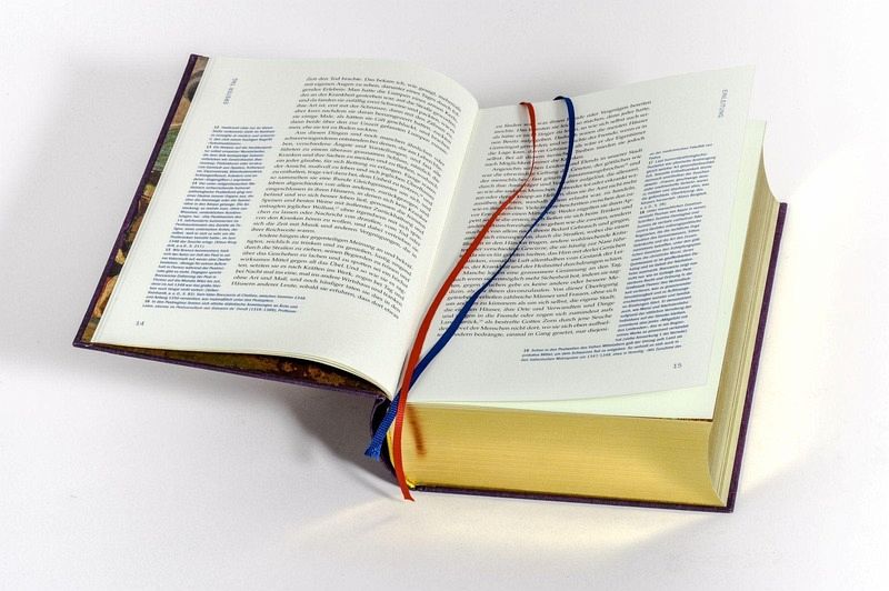 - Zwei Lesebändchen in rot und blau