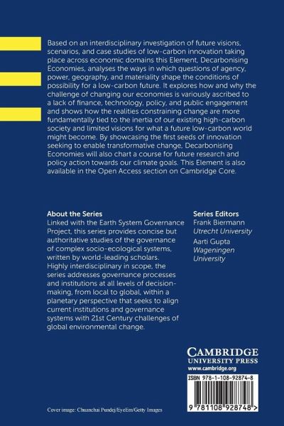 Decarbonising Economies analyses the ways in which questions of agency, power, geography and materiality shape the conditions of possibility for a low carbon future. This title is also available as Open Access on Cambridge Core.