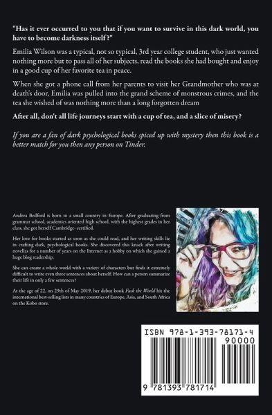 "Has it ever occurred to you that if you want to survive in this dark world, you have to become darkness itself?" Emilia Wilson was a typical, not so typical, 3rd year college student, who just wanted nothing more but to pass all of her subjects, read the books she had bought and enjoy in a good cup of her favorite tea in peace. When she got a phone call from her parents to visit her Grandmother who was at death's door, Emilia was pulled into the grand scheme of monstrous crimes, and the tea she wished of was nothing more than a long forgotten dream After all, don't all life journeys start with a cup of tea, and a slice of misery? If you are a fan of dark psychological books spiced up with mystery then this book is a better match for you then any person on Tinder.