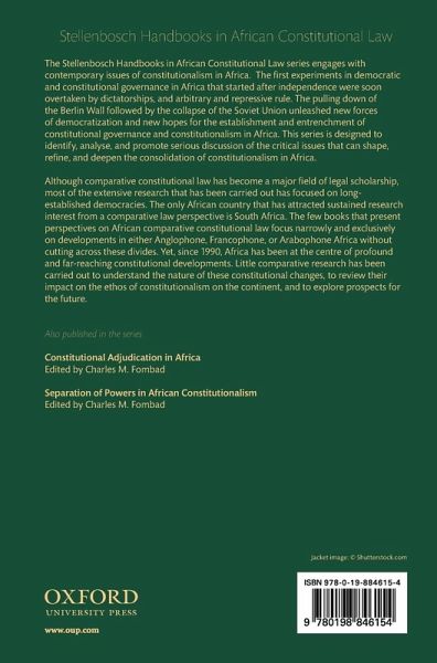 * Introduction * Part I: Introductory Overview * 1: Nico Steytler: The Relationship between Decentralization and Constitutionalism in Africa: Concepts, Conflicts, and Hypotheses * 2: Yash Ghai: Ethnicity, Decentralization, and Constitutionalism: A Comparative Perspective * 3: Charles M. Fombad: Regional and Continental Frameworks for Decentralization in Africa: The African Charter on Decentralization * Part II: Federal and Hybrid Federal Systems in Africa * 4: Rotimi T. Suberu: Constitutional Infidelity and Federalism in Nigeria * 5: Yonatan Fessha: A Federation without Federal Credentials: The Story of Federalism in a Dominant Party State * 6: Nico Steytler: The Dynamic Relationship between Devolution and Constitutionalism in South Africa * 7: Balingene Kahombo: Regionalizing Provinces under the Congolese Constitution of 18 February 2006: Progress and Challenges * 8: Conrad M. Bosire: Implementation of Devolution under Kenya's 2010 Constitution: Political Resistance and the Struggle for the Ideals of Constitutionalism * 9: Zemelak Ayitenew Ayele: Constitutionalism: The Missing Element in South Sudan's Elusive Quest for Peace through Federalism? * Part III: Decentralisation, Local Government, and Constitutionalism * 10: Jaap de Visser: Constitutionalisation of Local and Regional Government in South Africa, Uganda, and Lesotho * 11: Kofi Quashigah: Decentralization for Participatory Governance under Ghana's 1992 Constitution: The Rhetoric and the Reality * 12: Tinashe Chigwata: Decentralization and Constitutionalism in Zimbabwe: Can the Leviathan be Tamed? * 13: Charles M. Fombad: Cameroon and the Anomalies of Decentralization with a Centralist Mindset * 14: Joseph Hengelela Cihunda: Decentralised Territorial Entities and Promotion of Local Governance under the Constitution of 18 February 2006 in the Democratic Republic of the Congo * 15: André Thomashausen: The Concept and Implementation of 'Gradual Decentralization' in Mozambique * 16: Sherif Elgebeily: Progress and Pitfalls in Constitutional Reform: Decentralization in the Wake of the Arab Spring in Egypt and Tunisia * 17: Christophe Van der Beken: Subnational Constitutional Autonomy, Local Government, and Constitutionalism in Ethiopia * Part IV: Traditional Institutions and Decentralisation * 18: Jan Erk: Constitutionalisation of Traditional Authorities and the Decentralization of Governance: Anglophone and Francophone Africa Compared * 19: Christa Rautenbach: Mapping Traditional Leadership and Authority in Post-Apartheid South Africa: Decentralization and Constitutionalism in Traditional Governance * 20: Musa Njabulo Shongwe: The Tinkhundla Decentralization System: Is this a Blend of Traditional and Modern State Governance that Works? * Part V: General Conclusion * 21: Nico Steytler: The Symbiotic Relationship between Decentralization and Constitutionalism in Africa