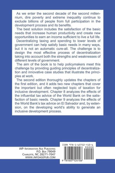 A volume in Research on Hispanic and Latino Business Series Editors Michael William Mulnix and Esther Elena López-Mulnix More than one in every five Latin Americans lives on less than $2 a day, and Latin America is the most unequal region in the world. The book tackles the problem of poverty and inequality in Latin America through the novel approach of using the decentralization of government functions to satisfy the basic needs of the poor. Decentralization can bring government closer to the people and strengthen the voice of the voiceless. Satisfying basic needs for services such as education and health care enhances productivity and imparts an indispensable opportunity to earn an income sufficient to emerge from poverty and to live a full life. Part 1 describes the poverty and inequality of Latin America and the Basic Needs Approach to Development. Part 2 introduces a model of decentralization as a step-by-step process, and it shows the policymaker how to implement decentralization in stages through matching its various degrees with real-world circumstances. Part 3 enriches the understanding of policymakers by analyzing real-world cases of decentralization in light of the decentralization model. The second edition includes two new chapters that cover the important but often neglected topic of taxation for inclusive development. Chapter 8 analyzes the influential tax advice of the World Bank in terms of its effect on decentralization and the satisfaction of basic needs. Appendix B of Chapter 8 presents an empirical analysis in support of the chapter's argument that the Bank's policy is in need of revision. Chapter 9 analyzes the effects of the World Bank's tax advice on El Salvador's tax reform and development process. Two other chapters have been extensively updated: Chapter 6 records and analyzes the rapid evolution of Mexico's Oportunidades program for health, education and nutrition, and Chapter 10 evaluates the progress of the United States' innovative program for foreign aid, The Millennium Challenge Account. Throughout the book, tables and references have been updated.