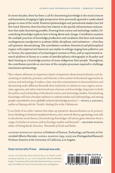 In recent decades, there has been a call for decentering knowledge in the social sciences and humanities, bringing to light perspectives from previously ignored or undervalued groups or areas of the world. Feminist epistemologies and postcolonial studies have led this trend. However, there has been less interest in the specific infrastructures and practices that make decentering possible. Drawing from science and technology studies, Decentralizing Knowledges examines how to bring about such change. Contributors explore the multiple practices of knowledge production and circulation that favor and nurture nonhegemonic standpoints in academic fields, disciplines, and institutions-what they call epistemic decentralizing. The contributors combine theoretical and philosophical inquiry with empirical and historical case studies in settings ranging from palliative care in Taiwan, the repatriation of archaeological remains to Peru, and an experimental research platform in Kenya to a center of interdisciplinary ethnography in Ecuador and duck hunting as a knowledge practice of many indigenous Sámi people. Throughout, the contributors provide an overview of the complex processes required to challenge mainstream epistemology. Contributors: Linda Martín Alcoff, Elías Barticevic, Johan Henrik Buljo, Ronald Cancino, Cristina Flores, Kim Fortun, Sandra Harding, Line Aimee Kalak, Duygu Kasdogan, Wiebke Keim, Aalok Khandekar, Daniel Lee Kleinman, Wen-Hua Kuo, John Law, Les Levidow, Leandro Rodriguez Medina, Angela Okune, Liv Østmo, Ari Sitas, Maka Suarez, Sharon Traweek, Hebe Vessuri