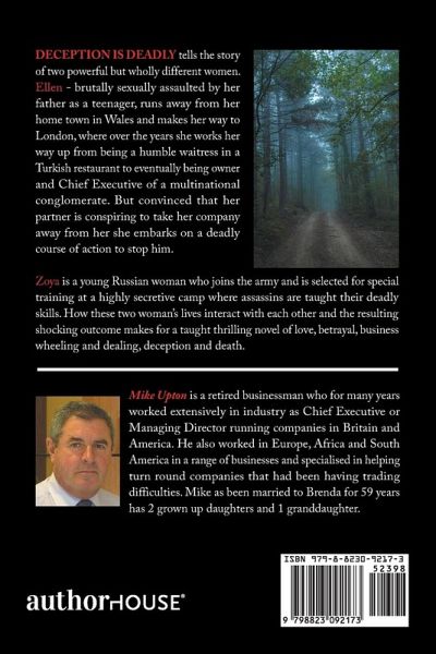 DECEPTION IS DEADLY tells the story of two powerful but wholly different women. Ellen - brutally sexually assaulted by her father as a teenager, runs away from her home town in Wales and makes her way to London, where over the years she works her way up from being a humble waitress in a Turkish restaurant to eventually being owner and Chief Executive of a multinational conglomerate. But convinced that her partner is conspiring to take her company away from her she embarks on a deadly course of action to stop him. Zoya is a young Russian woman who joins the army and is selected for special training at a highly secretive camp where assassins are taught their deadly skills. How these two woman's lives interact with each other and the resulting shocking outcome makes for a taught thrilling novel of love, betrayal, business wheeling and dealing, deception and death.