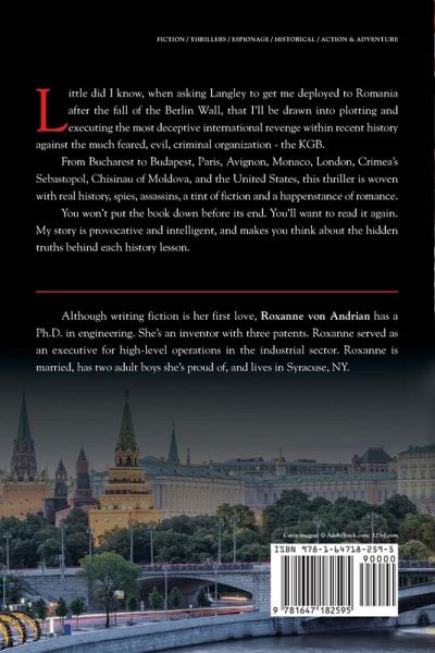 Little did I know, when asking Langley to get me deployed to Romania after the fall of the Berlin Wall, that I’ll be drawn into plotting and executing the most deceptive international revenge within recent history against the much feared, evil, criminal organization - the KGB. From Bucharest to Budapest, Paris, Avignon, Monaco, London, Crimea’s Sebastopol, Chisinau of Moldova, and the United States, this thriller is woven with real history, spies, assassins, a tint of fiction and a happenstance of romance. Four men, under Ceausescu’s communist regime in Romania, had powerful roles in the political apparatchik. After the ‘89 Revolution, they met again, as members of the Miklos Fund Board, in Bucharest, Romania. Miklos was an American multi-millionaire born in Transylvania who opened the Miklos Fund with the scope of financing Romanians to find their way in a civil society. These men, Oscar, Ferencz, Adi, and Cornel, teamed up with me, Ingrid, a CIA agent. We diverted money from the Miklos Fund’s educational programs to finance the theft of enriched plutonium from the Russia-owned military base of Crimea’s Sebastopol, with collaboration from other ex-communist Ukrainian and Moldavian agents turned rogue. We acted under the guidance of a French squad of operatives who, with help from Italian assassins, plotted to kill an ex-KGB officer in London by poisoning him with plutonium. The twist was to make the assassination appear to be ordered and executed by the Russian FSB, the successor of the KGB.