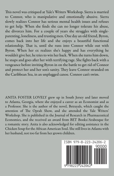 This novel was critiqued at Yale's Writers Workshop. Sierra is married to Connor, who is manipulative and emotionally abusive. Sierra slowly realizes Connor has serious mental health issues and refuses to get help. When she finds she can no longer tolerate his abuse, she divorces him. For a couple of years she struggles with single- parenting, loneliness, and trusting men. One day an old friend, Byron, comes back into her life and she enjoys a beautiful functional relationship. That is, until she runs into Connor while out with Byron. When her ex realizes she's happy and has everything he wouldn't give her, he tries to win her back. When she turns him down, he snaps and goes after her with terrifying rage. She fights back with a vengeance before inviting Byron in on the battle to get rid of Connor and protect her and her son's sanity. They leave Connor stranded on the Caribbean Sea, in an unplugged canoe. Connor can't swim.