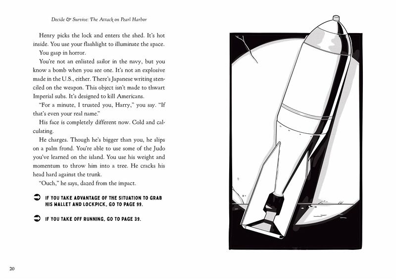 A fast-paced, interactive adventure series for kids, featuring death-defying moments in history! This time featuring the Japanese Attack on Pearl Harbor! "Vivid graphics help bring the history of the attack on Pearl Harbor, the eruption of Mt. Vesuvius, and the American Revolution to life. Opportunities for discussion about choices and consequences will be plentiful and will make historical events much more comprehensible and relatable."-School Library Journal The surprise military strike by the Imperial Japanese Navy Air Service against the United States naval base at Pearl Harbor in Hawaii on December 7, 1941, was a devastating and horrific moment in American history. Young readers make decisions, and determine their own survival, by joining forces on the ground in the days and hours before and after the devastation in Decide and Survive: Attack on Pearl Harbor. Don't forget: YOU, the reader, are in the driver's seat! This time, you're an eleven-year-old child of US naval military officers, enjoying life on the island, when the bombing begins. Your first decision is whether to go in search of your father or stay and protect your mother and sister. Along the way, readers are asked to protect half-Japanese classmates, save their abducted family, or even help raise Adolph Hitler to become a good person. With each page turn YOU decide which way the story, and mystery, unravels. A book like no other-to be used in a variety of ways-challenges puzzle-solving readers and ignites a love of history for life. The perfect gift or educational book, slyly written as an interactive narrative adventure, will delight and enthrall avid and reluctant readers with its energy and excitement. As an added educational bonus, extensive backmatter includes a timeline, information aboutthe Japanese fighter planes, details about the nuclear bombings of Japan, the internment of Japanese Americans in the US, Japanese stereotypes in American comic books of the time, and the Nanking Massacre. About the Decide & Survive series: Your Call to Adventure! Dear Reader, this is your story. You control how history happens through the choices you make. Don't read this book from the first page to the last. Instead, follow the directions at the bottom of each page. When you're offered options, choose wisely because your decision could end in disaster as easily as triumph. No matter how your story ends, feel free to start over and create a different story with a new outcome. Adventure, mystery, danger, and fortune await. Good luck!