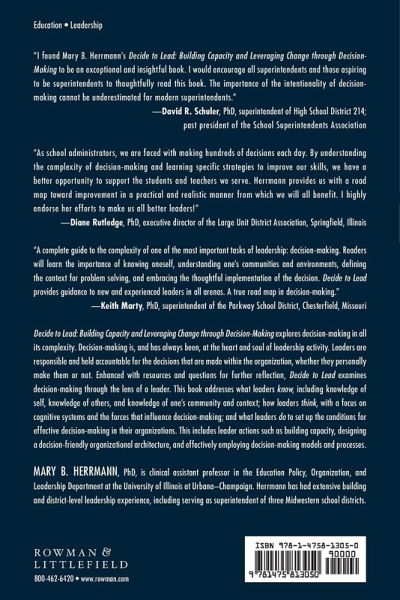 Decide to Lead explores decision-making and all its complexity. Decision-making is, and has always been at the heart and soul of leadership activity. Leaders are responsible and held accountable for the decisions that are made within the organization, whether they personally make them or not. Enhanced with resources and questions for further reflection, Decide to Lead examines decision-making through the lens of a leader. The book addresses what leaders know: knowledge of self, knowledge of others, and knowledge of one’s community and context; how leaders think, with a focus on cognitive systems and the forces that influence decision-making; and what leaders do to set up the conditions for effective decision-making in their organizations. This includes leader actions such as building capacity, designing a decision friendly organizational architecture and effectively employing decision-making models and processes.