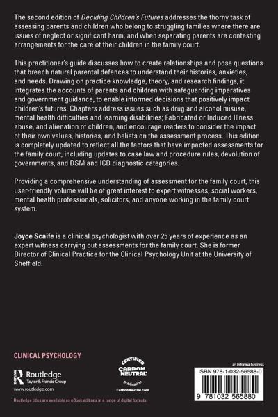 The second edition of Deciding Children's Futures addresses the thorny task of assessing parents and children who belong to struggling families where there are issues of neglect or significant harm, and when separating parents are contesting arrangements for the care of their children in the family court.