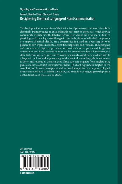 This book provides an overviewof the intricacies of plant communication via volatile chemicals. Plantsproduce an extraordinarily vast array of chemicals, which provide communitymembers with detailed information about the producer's identity, physiology andphenology. Volatile organic chemicals, either as individual compounds or complexchemical blends, are a communication medium operating between plants and anyorganism able to detect the compounds and respond. The ecological andevolutionary origins of particular interactions between plants and the greatercommunity have been, and will continue to be, strenuously debated. However, itis clear that chemicals, and particularly volatile chemicals, constitute amedium akin to a linguistic tool. As well as possessing a rich chemicalvocabulary, plants are known to detect and respond to chemical cues. These cues can originate from neighbouring plants, or other associatedcommunity members. This book beginswith chapters on the complexity of chemicalmessages, provides a broad perspective on a range of ecological interactionsmediated by volatile chemicals, and extends to cutting edge developments on thedetection of chemicals by plants.