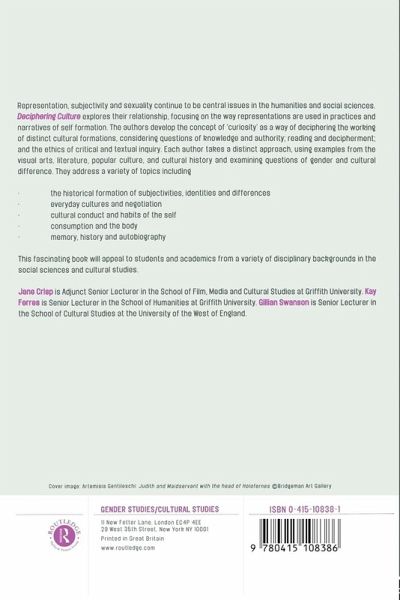Representation, subjectivity and sexuality continue to be central to scholarly inquiry in the humanities and social sciences. Deciphering Culture explores their relationship, each author taking a distinct approach to the concept of 'curiosity' as a way of deciphering the working of particular cultural formations. In the process they address a variety of topics including: * the historical formation of subjectivities, identities and differences * cultural conduct and habits of the self * everyday cultures and negotiation * consumption and the body * memory, history and autobiography * the ethics of critical and textual inquiry. This fascinating book will appeal to students and academics from a variety of disciplinary backgrounds in the social sciences and cultural studies.