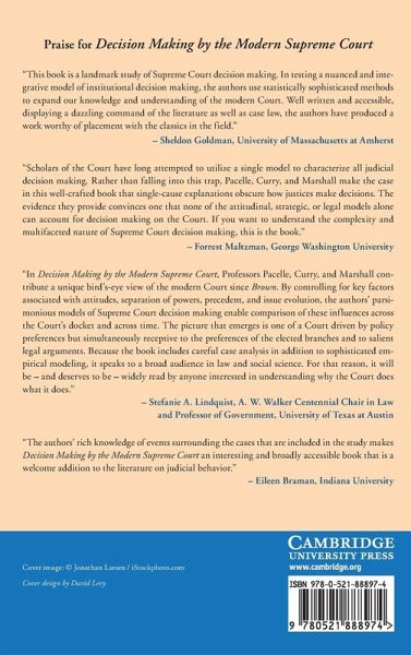 There are three general models of Supreme Court decision making: the legal model, the attitudinal model and the strategic model. But each is somewhat incomplete. This book advances an integrated model of Supreme Court decision making that incorporates variables from each of the three models. In examining the modern Supreme Court, since Brown v. Board of Education, the book argues that decisions are a function of the sincere preferences of the justices, the nature of precedent, and the development of the particular issue, as well as separation of powers and the potential constraints posed by the president and Congress. To test this model, the authors examine all full, signed civil liberties and economic cases decisions in the 1953-2000 period. Decision Making by the Modern Supreme Court argues, and the results confirm, that judicial decision making is more nuanced than the attitudinal or legal models have argued in the past.