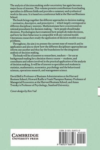 The analysis of decision making under uncertainty has again become a major focus of interest. This volume, based on a conference at Harvard Business School, brings together different approaches to decision making - normative, descriptive and prescriptive - which largely correspond to different disciplinary interests of mathematics, psychology, operations research.