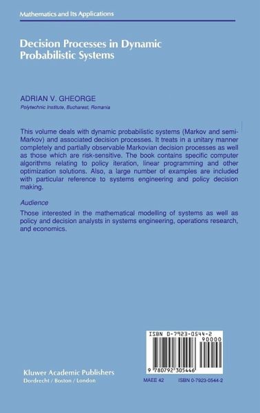 1 Semi-Markov and Markov Chains.- 1.1 Definitions and basic properties.- 1.2 Algebraic and analytical methods in the study of Markovian systems.- 1.3 Transient and recurrent processes.- 1.4 Markovian populations.- 1.5 Partially observable Markov chains.- 1.6 Rewards and discounting.- 1.7 Models and applications.- 1.8 Dynamic-decision models for clinical diagnosis.- 2 Dynamic and Linear Programming.- 2.1 Discrete dynamic programming.- 2.2 A linear programming formulation and an algorithm for computation.- 3 Utility Functions and Decisions under Risk.- 3.1 Informational lotteries and axioms for utility functions.- 3.2 Exponential utility functions.- 3.3 Decisions under risk and uncertainty; event trees.- 3.4 Probability encoding.- 4 Markovian Decision Processes (Semi-Markov and Markov) with Complete Information (Completely Observable).- 4.1 Value iteration algorithm (the finite horizon case).- 4.2 Policy iteration algorithm (the finite horizon optimization).- 4.3 Policy iteration with discounting.- 4.4 Optimization algorithm using linear programming.- 4.5 Risk-sensitive decision processes.- 4.6 On eliminating sub-optimal decision alternatives in Markov and semi-Markov decision processes.- 5 Partially Observable Markovian Decision Processes.- 5.1 Finite horizon partially observable Markov decision processes.- 5.2 The infinite horizon with discounting for partially observable Markov decision processes.- 5.3 A useful policy iteration algorithm, for discounted (? < 1) partially observable Markov decision processes.- 5.4 The infinite horizon without discounting for partially observable Markov processes.- 5.5 Partially observable semi-Markov decision processes.- 5.6 Risk-sensitive partially observable Markov decision processes.- 6 Policy Constraints in Markov DecisionProcesses.- 6.1 Methods of investigating policy costraints in Markov decision processes.- 6.2 Markov decision processes with policy constraints.- 6.3 Risk-sensitive Markov decision process with policy constraints.- 7 Applications.- 7.1 The emergency repair control for electrical power systems.- 7.2 Stochastic models for evaluation of inspection and repair schedules [2].- 7.3 A Markovian dicision model for clinical diagnosis and treatment applied to the respiratory system.