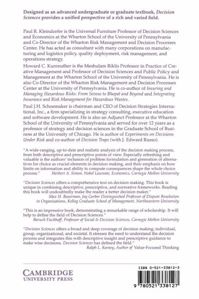 Using a set of illustrative examples, this new textbook synthesises current research about different types of decision making, including individual, group, organisational, and societal. Special attention is also given to the linkage between problem finding and problem solving.