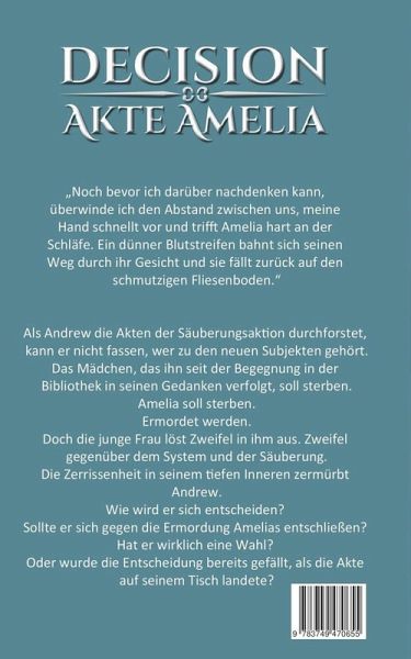 Als Andrew die Akten der Säuberungsaktion durchforstet, kann er nicht fassen, wer zu den neuen Subjekten gehört.Das Mädchen, das ihn seit der Begegnung in der Bibliothek in seinen Gedanken verfolgt, soll sterben.Amelia soll sterben.Ermordet werden.Doch die junge Frau löst Zweifel in ihm aus. Zweifel gegenüber dem System und der Säuberung.Die Zerrissenheit in seinem tiefen Inneren zermürbt Andrew.Wie wird er sich entscheiden? Sollte er sich gegen die Ermordung Amelias entschließen? Hat er wirklich eine Wahl? Oder wurde die Entscheidung bereits gefällt, als die Akte auf seinem Tisch landete?