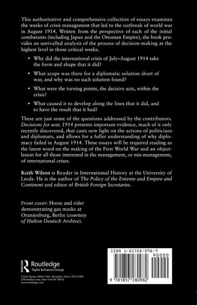 Keith Wilson is Lecturer in International History at the University of Leeds.; This book is intended for undergraduate history courses: broad 20th century European history, First World War, military history, war studies, international and diplomatice history, school libraries.