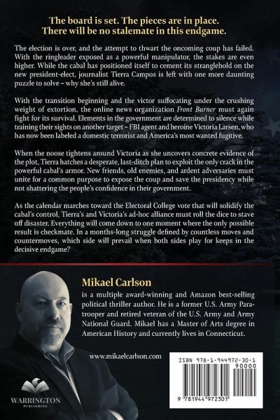 The board is set. The pieces are in place. There will be no stalemate in this endgame. Journalist Tierra Campos and FBI Special Agent Victoria Larsen make a last-ditch effort to stop a coup against the incoming president of the United States in the fifth book of this high-octane political thriller series. As the calendar marches toward the Electoral College vote that will solidify the cabal's control, Tierra's and Victoria's ad-hoc alliance must roll the dice to stave off disaster. Everything will come down to one moment where the only possible result is checkmate. In a months-long struggle defined by countless moves and countermoves, which side will prevail when both sides play for keeps in the decisive endgame? Revealed Secrets is the final novel in a five-book serial drama. Readers are encouraged to begin the journey with Justifiable Deceit and enjoy the Tierra Campos Thrillers in the order they were written. "True freedom is laying your king down before someone does it for you." The election is over, and the attempt to thwart the oncoming coup has failed. With the ringleader exposed as a powerful manipulator, the stakes are even higher. While the cabal has positioned itself to cement its stranglehold on the new president-elect, journalist Tierra Campos is left with one more daunting puzzle to solve - why she's still alive. With the transition beginning and the victor suffocating under the crushing weight of extortion, the online news organization Front Burner must again fight for its survival. Elements in the government are determined to silence while training their sights on another target - FBI agent and heroine Victoria Larsen, who has now been labeled a domestic terrorist and America's most wanted fugitive. When the noose tightens around Victoria as she uncovers concrete evidence of the plot, Tierra hatches a desperate, last-ditch plan to exploit the only crack in the powerful cabal's armor. New friends, old enemies, and ardent adversaries must unite for a common purpose to expose the coup and save the presidency while not shattering the people's confidence in their government. Revealed Secrets is a fast-paced political suspense thriller with twists and turns that will keep you on the edge of your seat until the final chapter. The Tierra Campos Thrillers (in order): Justifiable Deceit Devious Measures Vital Targets Revealed Secrets Decisive Endgame