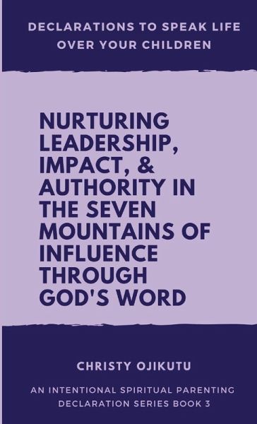 This book is a Spirit-led guide for parents who want to raise children who don't simply follow culture, but shape it for God's Kingdom. Built on biblical truths regarding the Seven Mountains of Influence - Family, Education, Religion, Government, Arts & Entertainment, Media, and Business-this book equips parents to prepare the next generation with vision, wisdom, and spiritual authority. Each section includes a focused teaching, Scripture-based declarations for both parent and child, reflection questions, journaling prompts, prayers, and practical applications. This is more than a devotional-it's a parenting strategy to prepare Kingdom leaders who walk in truth, courage, and purpose.