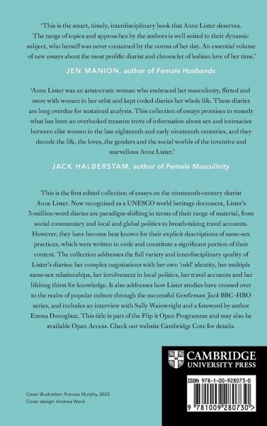 Introduction Chris Roulston; 1. Caroline Gonda in conversation with Helena Whitbread; Part I. Nature was in an Odd Freak When She Made Me: Lister, Sexuality, Gender and Natural History: 2. A regular oddity: natural history and Anne Lister's Queer theory of tradition Laurie Shannon; 3. Anne Lister's search for the anatomy of sex Anna Clark; Part II. My Spirit's Oil: Lister Reading, Lister Writing: 4. My use of the word love: lister, language and the dictionary Stephen Turton; 5. Self-conscious closeting and paradoxical writing in Anne Lister's diaries Caroline Baylis-Green; Part III. Born at Halifax: Lister's Politics, Local and Global: 6. Anne Lister's politics Susan S. Lanser; 7. Building castles in the air: Anne Lister and associational life Cassandra Ulph; 8. Anne Lister's home Angela Clare; Part IV. Curious Scenes: Lister's Travels: 9. The art of travelling requires an apprenticeship: Anne Lister's diaries and travel Kirsty McHugh; 10. Traveling in the caucasus, traveling in time: decoding biography as genre Angela Steidele; Part V. I Beg to be Remembered: Lister, Public History and Popular Culture: 11. Labels, plaques and identity categories: finding the words for Anne Lister Caroline Gonda; 12. From Anne Lister to gentleman Jack: queer temporality, fandom and the gains and losses of adaptation Chris Roulston; 13. Emma Donoghue in Conversation with Sally Wainwright; Bibliography; Index.