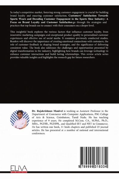 In today's competitive market, fostering strong customer engagement is crucial for building brand loyalty and ensuring customer satisfaction. Customers' Satisfaction Towards Sports Wears and Decoding Customer Engagement in the Sports Shoe Industry: A Focus on Brand Loyalty and Customer Satisfaction go through the strategies and practices that top brands use to connect with their consumers on a deeper level. This insightful book explores the various factors that influence customer loyalty, from innovative marketing campaigns and exceptional product quality to personalized customer experiences and effective use of social media. It examines previously conducted studies. Readers will discover the importance of creating emotional connections with customers, the role of customer feedback in shaping brand strategies, and the significance of delivering consistent value. The book also addresses the challenges and opportunities presented by digital transformation in the industry, highlighting how brands can leverage technology to enhance customer interactions and build lasting relationships. This review article series provides valuable insights and highlights the research gap for future researchers.