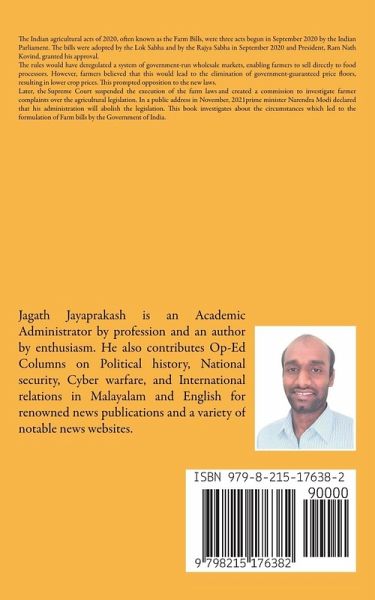 The Indian agricultural acts of 2020, often known as the Farm Bills, were three acts begun in September 2020 by the Indian Parliament. The bills were adopted by the Lok Sabha and by the Rajya Sabha in September 2020 and President, Ram Nath Kovind, granted his approval. The rules would have deregulated a system of government-run wholesale markets, enabling farmers to sell directly to food processors. However, farmers believed that this would lead to the elimination of government-guaranteed price floors, resulting in lower crop prices. This prompted opposition to the new laws. Later, the Supreme Court suspended the execution of the farm laws and created a commission to investigate farmer complaints over the agricultural legislation. In a public address in November, 2021prime minister Narendra Modi declared that his administration will abolish the legislation. This book investigates about the circumstances which led to the formulation of Farm bills by the Government of India.