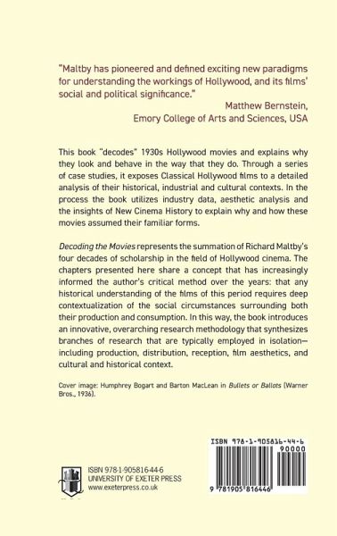 This book "decodes" 1930s Hollywood movies and explains why they looked and behaved as they did. Representing the summation of Richard Maltby's four decades of scholarship in the field, it uses a series of case studies to demonstrate how an appreciation of these movies is enhanced by examining the circumstances of their production and consumption.