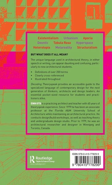 Existentialism; Urbanism; Aporia; Deontic; Tabula Rasa; Hyperspace; Heterotopia; Metareality; Structuralism... What does it all mean? The unique language used in architectural theory - both in speech and writing - can appear daunting and confusing, particularly to new architectural students. Decoding Theoryspeak provides an accessible guide to the specialized language of contemporary design for the next generation of thinkers, architects and design leaders. It includes: definitions of over 200 terms clear cross-references illustrations throughout. It is an essential pocket-sized resource for students and practitioners alike.