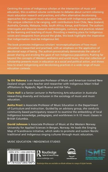 The book promotes Indigenous scholars' reconceptualisations of how music education is researched and practised, with an emphasis on the application of decolonial ways of being. The authors provocatively demonstrate the value of power-sharing and eroding the gaze of non-Indigenous populations. Pushing far beyond the concepts of Western aesthetics and world music, this vital collection of scholarship presents music in education as a social and political action, and shows how to enact Indigenising and decolonising practices in a wide range of music education contexts.