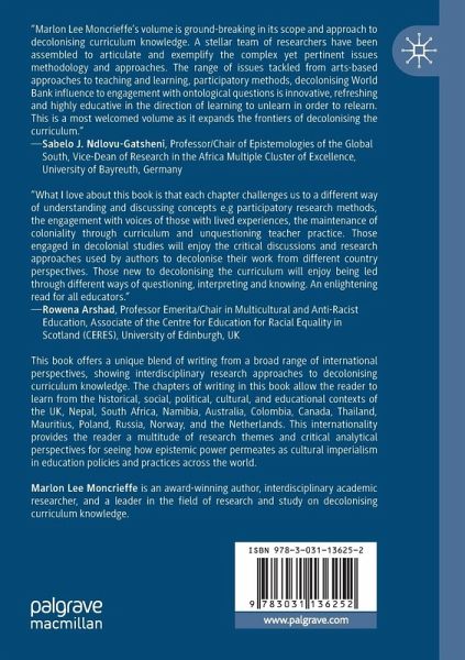 This book offers a unique blend of writing from a broad range of international perspectives, showing interdisciplinary research approaches to decolonising curriculum knowledge. With a focus on the intellectual, emotional, economic, and political reversal of colonial injustices, the decolonial research and writing in this book challenge dominant viewpoints and assumptions of curriculum knowledge by amplifying and disseminating the knowledge and perspectives of peoples that curriculum knowledge has historically silenced and marginalized. The chapters in this book allow the reader to learn from the historical, social, political, cultural, and educational contexts of the UK, Nepal, South Africa, Namibia, Australia, Colombia, Canada, Thailand, Mauritius, Poland, Russia, Norway, and the Netherlands. This internationality provides the reader with a multitude of research themes and critical analytical perspectives for seeing how epistemic power permeates as cultural imperialism in educationpolicies and practices across the world.