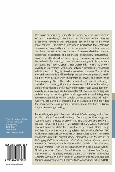 Recurrent clamours by students and academics for universities in Africa and elsewhere, to imbibe and exude a spirit of inclusion are a continual reminder that universities can and need to be much more convivial. Processes of knowledge production that champion delusions of superiority and zero-sum games of absolute winners and losers are elitist and un-convivial. Academic disciplines tend to encourage introversion and emphasise exclusionary fundamentalisms of heartlands rather than highlight inclusionary overtures of borderlands. Frequenting crossroads and engaging in frontier conversations are frowned upon, if not prohibited. The scarcity of conviviality in universities, within and between disciplines, and among scholars results in highly biased knowledge processes. The production and consumption of knowledge are socially and politically mediated by webs of humanity, hierarchies of power, and instances of human agency. Given the resilience of colonial education throughout Africa and among Africans, endogenous traditions of knowledge are barely recognised and grossly underrepresented. What does conviviality in knowledge production entail? It involves conversing and collaborating across disciplines and organisations and integrating epistemologies informed by popular universes and ideas of reality. Convivial scholarship is predicated upon recognising and providing for incompleteness – in persons, disciplines, and traditions of knowing and knowledge making.