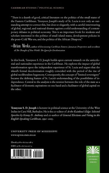 A case study of how a Caribbean nation may achieve political but not economic independence Tennyson S. D. Joseph builds upon current research on the anticolonial and nationalist experience in the Caribbean. He explores the impact of global transformation upon the independent experience of Saint Lucia and argues that the island's formal decolonization roughly coincided with the period of the rise of global neoliberalism hegemony. Consequently, the concept of "limited sovereignty" became the defining feature of Saint Lucia's understanding of the possibilities of independence. Central to the analysis is the tension between the role of the state as a facilitator of domestic aspirations on one hand and a facilitator of global capital on the other. Joseph examines six critical phases in the St. Lucian experience. The first is 1940 to 1970, when the early nationalist movement gradually occupied state power within a framework of limited self-government. The second period is 1970 to 1982 during which formal independence was attained and during which an attempt at socialist-oriented radical nationalism was pursued by the Saint Lucia Labor Party. The third distinctive period was the period of neoliberal hegemony, 1982-1990. The fourth period (1990-1997) witnessed a heightened process of neoliberal adjustment in global trade which destroyed the banana industry and transformed the domestic political economy. A later period (1997-2006) involved the SLP's return to political power, resulting in tensions between an earlier radicalism and a new and contradictory accommodation to global neoliberalism. The final period (2006-2010) coincides with the onset of a crisis in global neoliberalism during which a series of domestic conflicts reflected the contradictions of the dominant understanding of sovereignty in narrow, materialist terms at the expense of its wider antisystematic, progressive, and emancipator connotations. Tennyson S. D. Joseph, St. Peter, Barbados, is lecturer in political science at the University of the West Indies in Cave Hill, Barbados. He is the coeditor of At the Rainbow's Edge: Selected Speeches of Kenny D. Anthony and coauthor of General Elections and Voting in the English-Speaking Caribbean, 1992-2005.