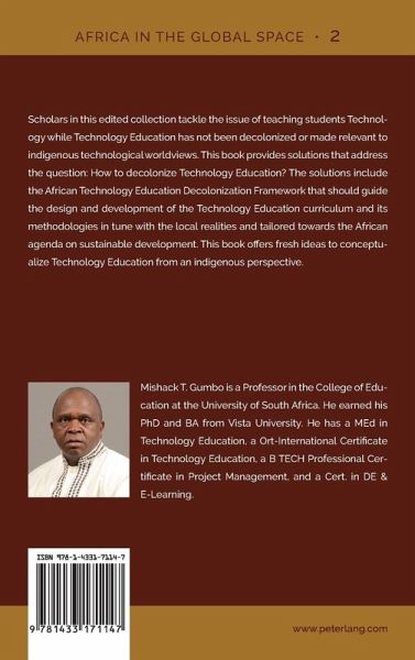 Mishack T. Gumbo: Preface - Mishack T. Gumbo: Introduction - Mishack T. Gumbo: What Does Decolonizing Technology Education Mean? - Joseph ZZ. Matowanyika: Modern Technologies as Vestiges of Indigenous Technologies - Mishack T. Gumbo: Disruptive Function of Modern Technology on Indigenous Technologies - Ronald J. Odora: Embracing African Worldview: Rationale for Decolonizing Technology Education Curriculum in Higher Education in South Africa - Peter Kwaira: African Indigenous Technologies: The Answer to Sustainable Development - Dominic Mashoko: Indigenous Peoples' Food Preservation Technologies and the Science Curriculum - Mishack T. Gumbo/Tomé A. Mapotse: Indigenous Mining and Its Criminalization: Implications for Technology Education - Keiphe Setlhatlhanyo/Odireleng Marope/Patrick Dichabeng: Indigenous Textile Technologies and Their Implicationsfor Decolonizing Technology Education - Edward Shizha: African Indigenous Agricultural Technologies: Implications for Decolonizing Technology Education - Mishack T. Gumbo: Considering Alternative Knowledge Forms in Technology Education - Mishack T. Gumbo: Decolonizing Technology Education Curriculum: The Case of South Africa - Michael Gaotlhobogwe/Victor Ruele: Decolonizing Technology Education: The Case of Botswana Higher Education - Peter Kwaira: Decolonizing Technology Education Curriculum: The Case of Zimbabwe - Mishack T. Gumbo/Richie Moalosi/Michael Gaotlhobogwe: An African Technology Education Decolonization Framework - Richie Moalosi/Yaone Rapitsenyane/Oanthata J. Sealetsa: Design as an Anchor of Technology Education: An African Cultural World View - Ronald J. Odora: Realigning the Technology Classroom/Laboratory to an Indigenous Context - Khazamula J. Maluleka: A Framework for Culturally Responsive Methodology of Technology Education - Khazamula J. Maluleka: Integrating Indigenous Resources and Materials in the Teaching of Technology - Tomé Awshar Mapotse: Developing Technology Teachers through Action Research: An African Perspective - Contributors.