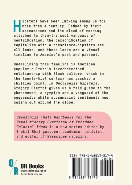 Underlining this timeline is the pattern of American popular culture's love/hate/theft relationship with Black culture. Yet the pattern of recycling has reached a chilling point: the 21st century hipster made all possible past fads into new trends, including and especially the old uncool. In Decolonize Hipsters, Grégory Pierrot gives us a field guide to the phenomenon, a symptom and vanguard of the wave of aggressive white supremacist sentiment now oozing from around the globe.