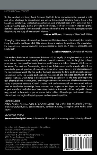 In this excellent and timely book Branwen Gruffydd Jones and collaborators present a bold and direct challenge to conventional and critical International Relations theory. Such is the breadth of scholarship, intellectual sophistication, and analytical rigor of this collection that it will be difficult to easily dismiss or evade this challenge. The book succeeds in uncovering long-dominant assumptions in International Relations scholarship and in devising strategies toward decolonizing the study of International Relations. -- Marc Williams, University of New South Wales Emerging at the height of colonialism, International Relations is not coincidentally but constitutively Eurocentric and imperialist. This volume dares to explore the politics of IR's imperialism, the imperative of moving beyond it, and possibilities for doing so. A cogent, accessible, and timely text. -- V. Spike Peterson, University of Arizona