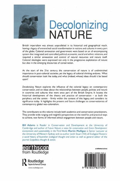 British imperialism was almost unparalleled in its historical and geographical reach, leaving a legacy of entrenched social transformation in nations and cultures in every part of the globe. Colonial annexation and government were based on an all-encompassing system that integrated and controlled political, economic, social and ethnic relations, and required a similar annexation and control of natural resources and nature itself. Colonial ideologies were expressed not only in the progressive exploitation of nature but also in the emerging discourses of conservation. At the start of the 21st century, the conservation of nature is of undiminished importance in post-colonial societies, yet the legacy of colonial thinking endures. What should conservation look like today, and what (indeed, whose) ideas should it be based upon? Decolonizing Nature explores the influence of the colonial legacy on contemporary conservation and on ideas about the relationships between people, polities and nature in countries and cultures that were once part of the British Empire. It locates the historical development of the theory and practice of conservation - at both the periphery and the centre - firmly within the context of this legacy, and considers its significance today. It highlights the present and future challenges to conservationists of contemporary global neo-colonialism The contributors to this volume include both academics and conservation practitioners. They provide wide-ranging and insightful perspectives on the need for, and practical ways to achieve new forms of informed ethical engagement between people and nature.