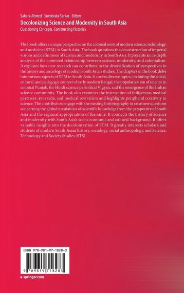 This book offers a unique perspective on the colonial roots of modern science, technology, and medicine (STM) in South Asia. The book questions the deconstruction of imperial visions and definitions of science and modernity in South Asia. It presents an in-depth analysis of the contested relationship between science, modernity, and colonialism. It explores how new research can contribute to the diversification of perspectives in the history and sociology of modern South Asian studies. The chapters in the book delve into various aspects of STM in South Asia. It covers diverse topics, including the social, cultural, and pedagogic context of early modern Bengal, the popularization of science in colonial Punjab, the Hindi science periodical Vigyan, and the emergence of the Indian science community. The book also examines the intersection of indigenous medical practices, ayurveda, Unani, and medical revivalism and highlights peripheral creativity in science. The contributors engage with the existing historiography to raise new questions concerning the global circulations of scientific knowledge from the perspective of South Asia and the regional appropriation of the same. It connects the history of science and modernity with South Asia's socio-economic and cultural background. It offers valuable insights into the decolonization of STM. It greatly interests scholars and students of modern South Asian history, sociology, social anthropology, and Science, Technology and Society Studies (STS).