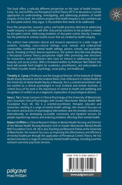 This book offers a radically different perspective on the topic of health inequity. Carey, Tai, and Griffiths use Perceptual Control Theory (PCT) to deconstruct current approaches to understanding, investigating, and addressing problems of health inequity. In the book, the authors propose that health inequity is not a problem per se. Disrupted control, they argue, is the problem that needs to be addressed.